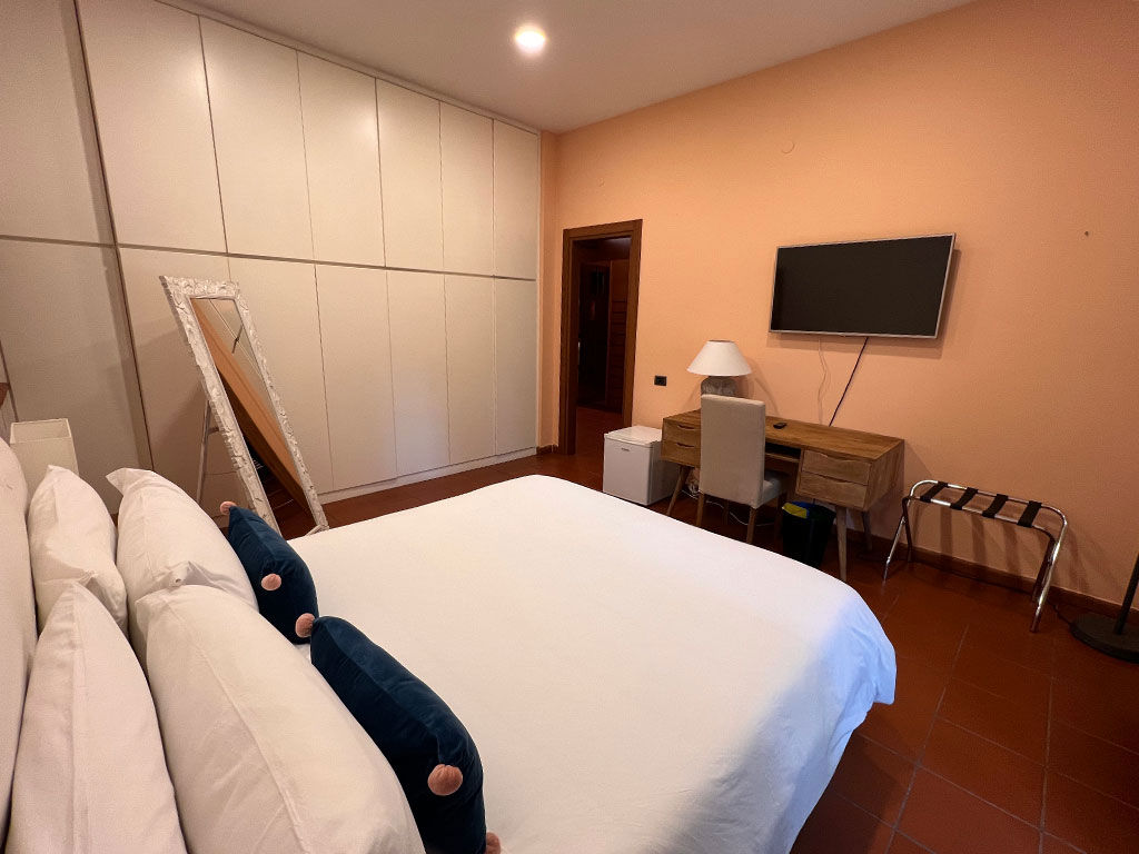 The Quercia Suite, spanning 17 m² of elegance, is the ideal choice for a romantic getaway or a special stay. Located on the upper floor of the property, it offers a splendid view of the surrounding countryside and bright interiors, furnished in a natural, minimalist style.