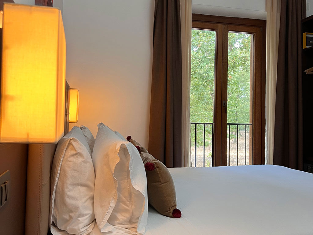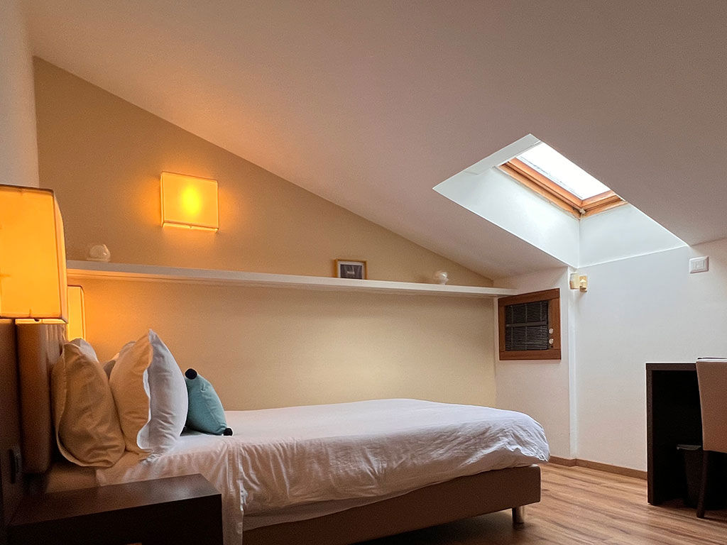 Tre camere matrimoniali eleganti e funzionali, ognuna con bagno privato, arredate con gusto sobrio e dettagli in legno che richiamano l’atmosfera della campagna romana, in cui la luce naturale contribuisce a creare uno spazio caldo, silenzioso e raffinato.