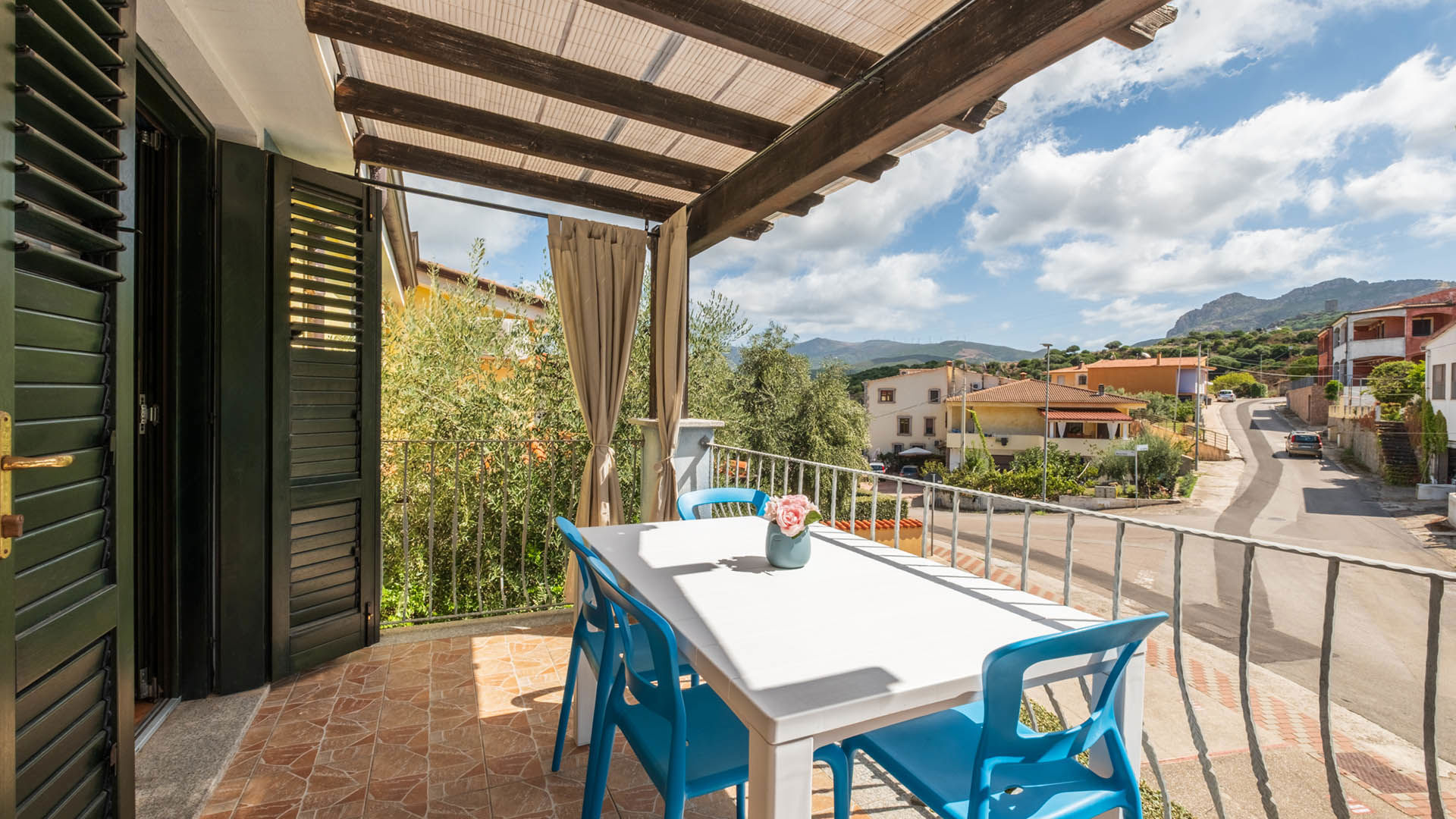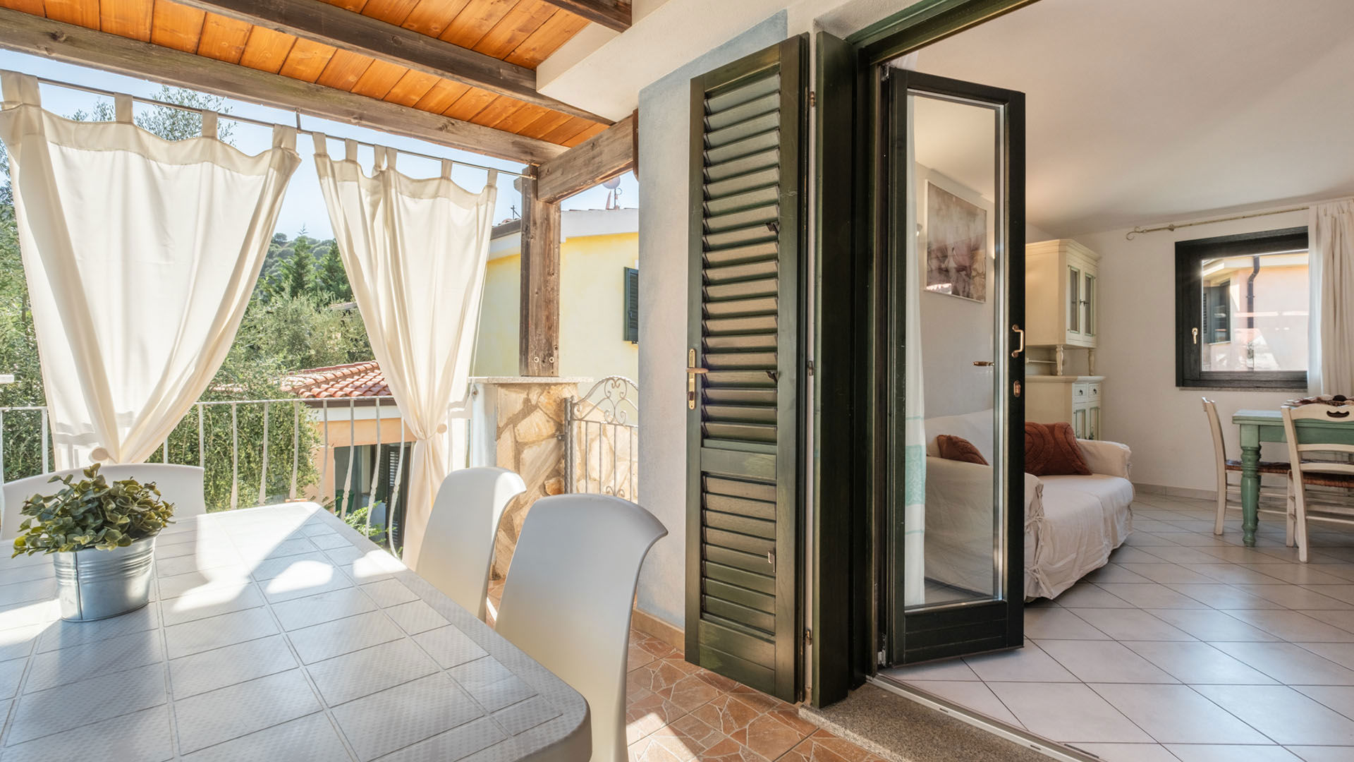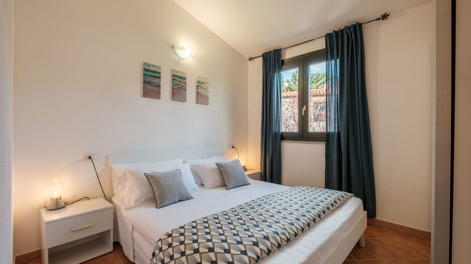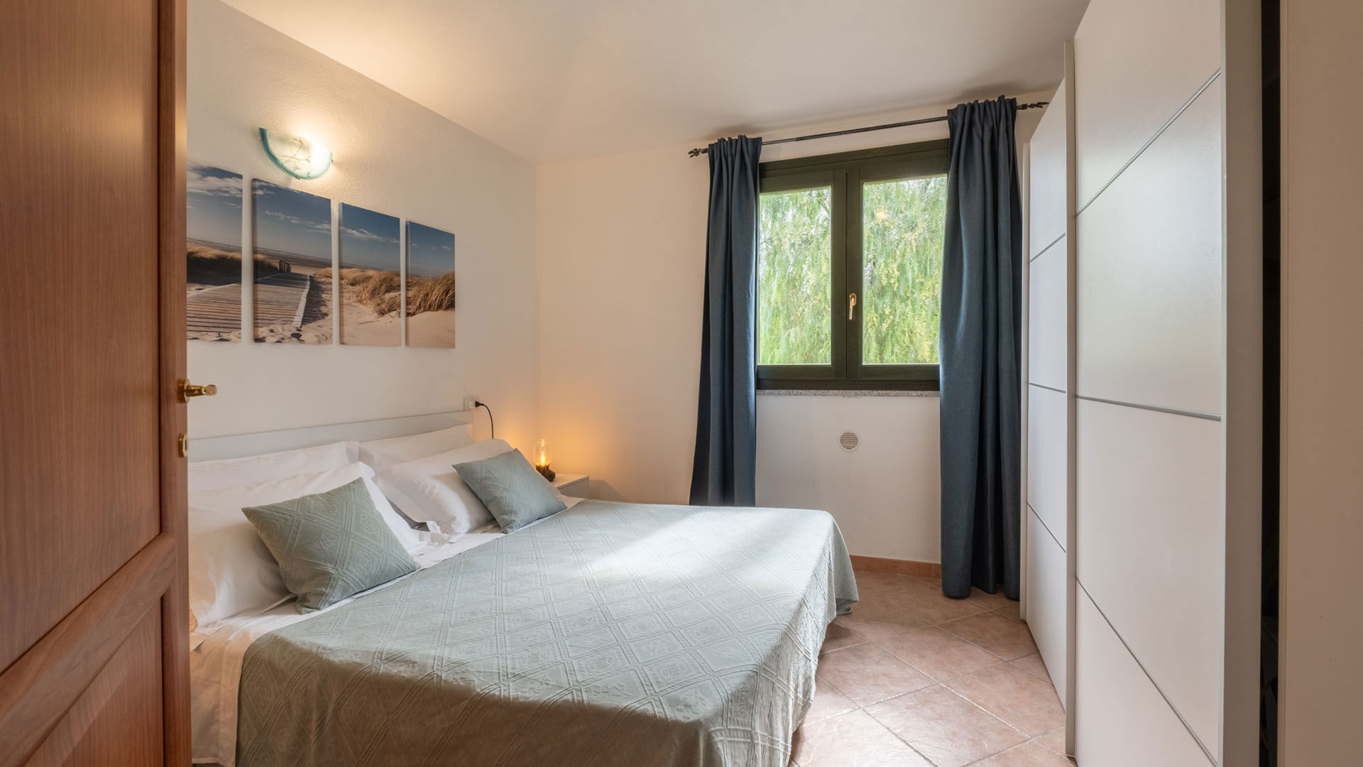 Trilocale al primo piano con piccoli terrazzini, arredato in stile gallurese. Dispone di soggiorno e cucina in open space, camera matrimoniale e cameretta con letto a castello. Un appartamento dal carattere autentico, ideale per famiglie.