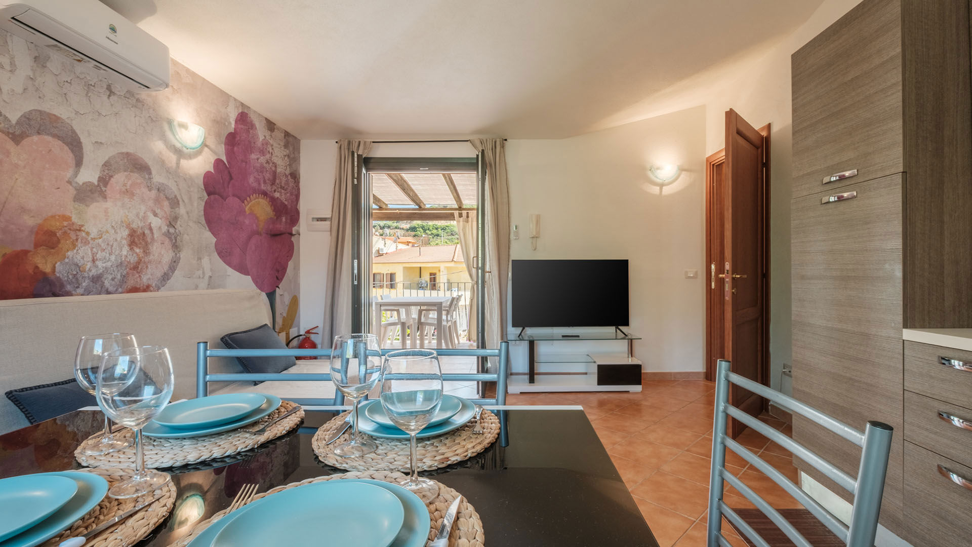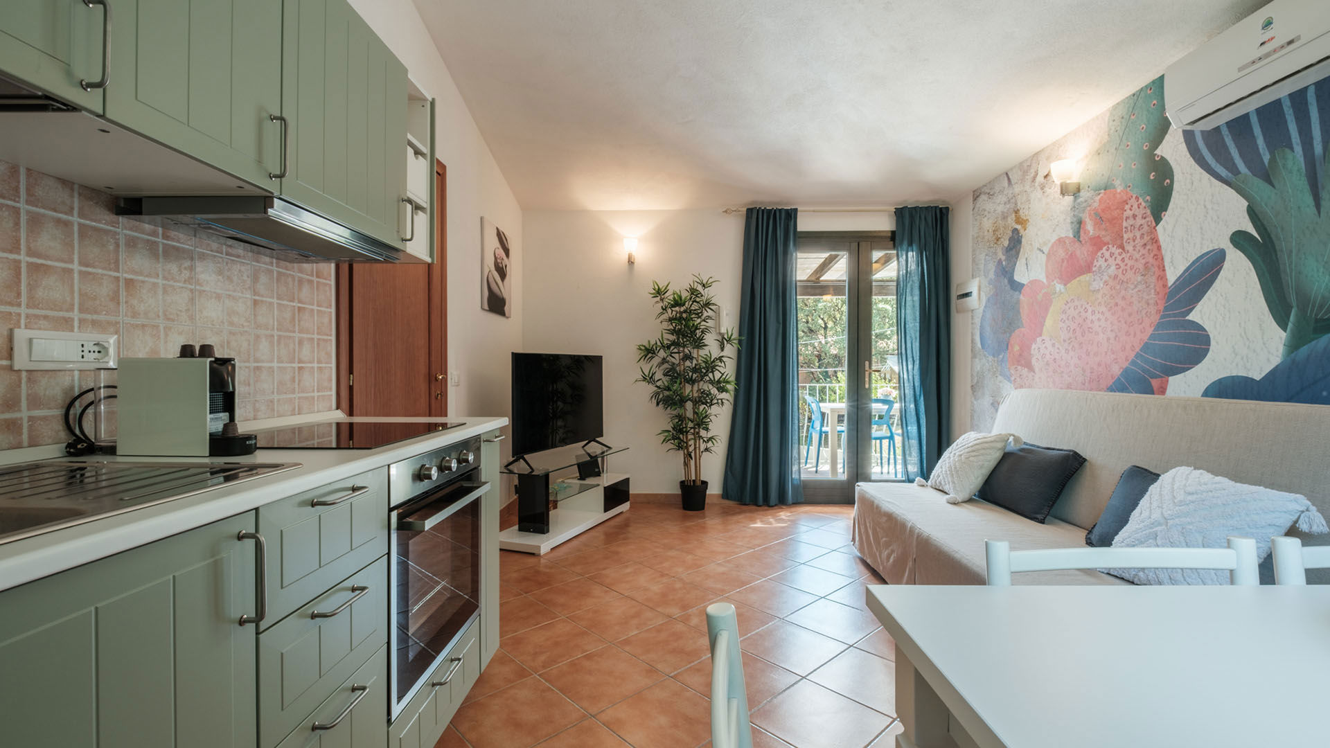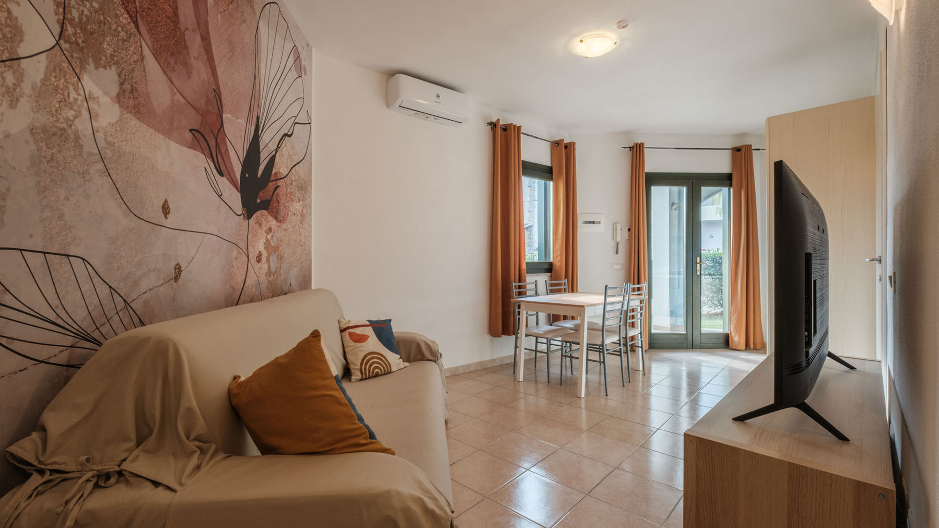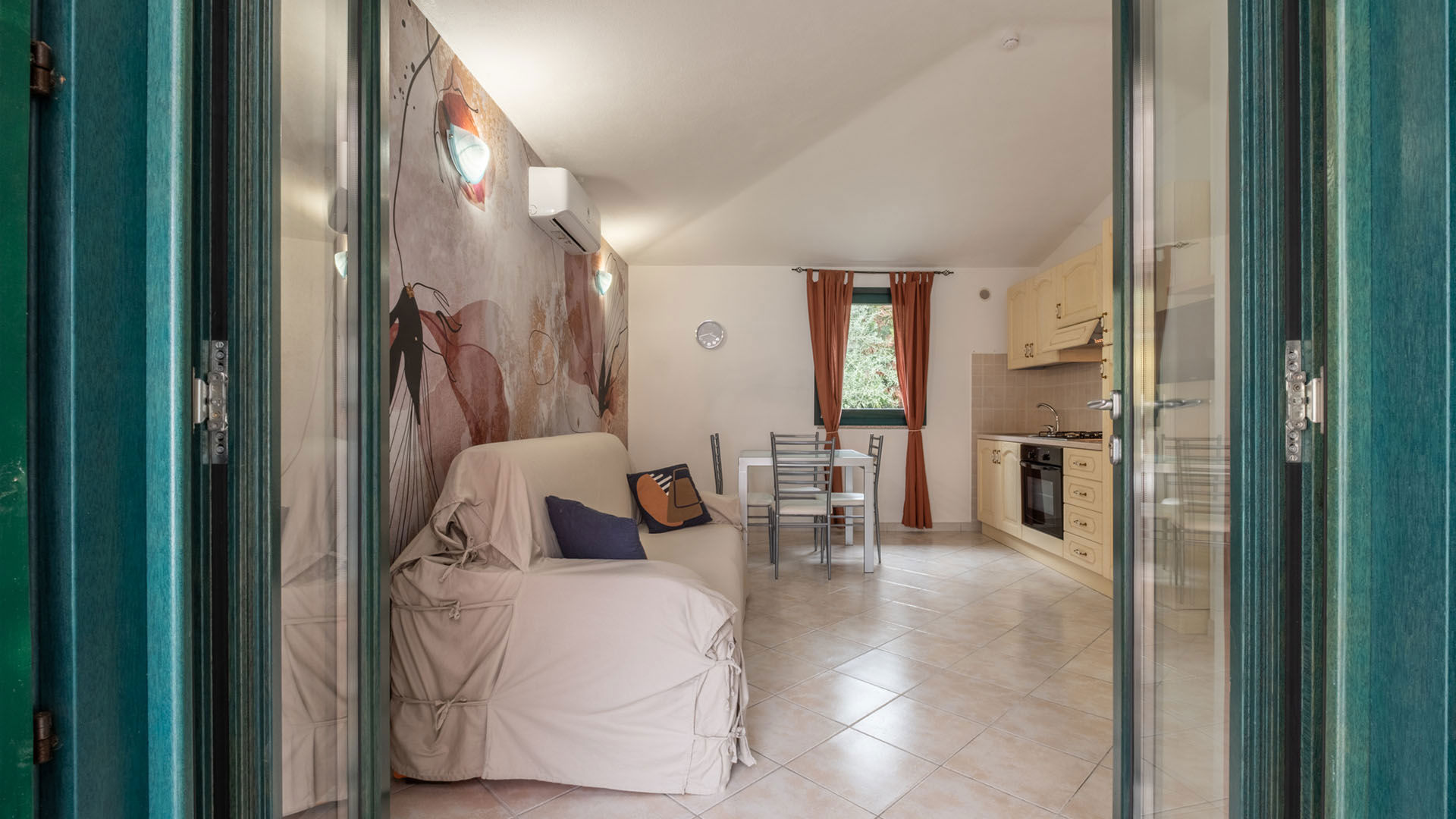 Per garantire un soggiorno confortevole anche nelle giornate più calde, gli appartamenti dispongono di aria condizionata, ideale per riposare bene e godersi gli ambienti interni nelle ore centrali della giornata. Ogni appartamento è dotato, inoltre, di zona giorno con angolo cottura, TV e connessione Wi-Fi, bagno privato e lavatrice.