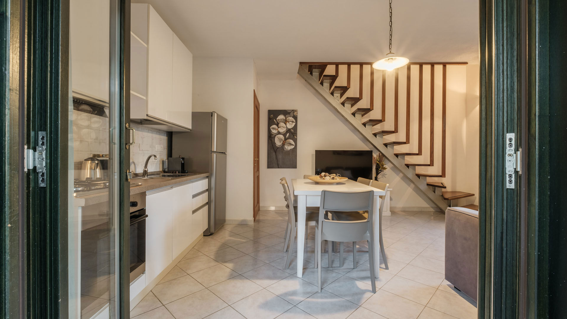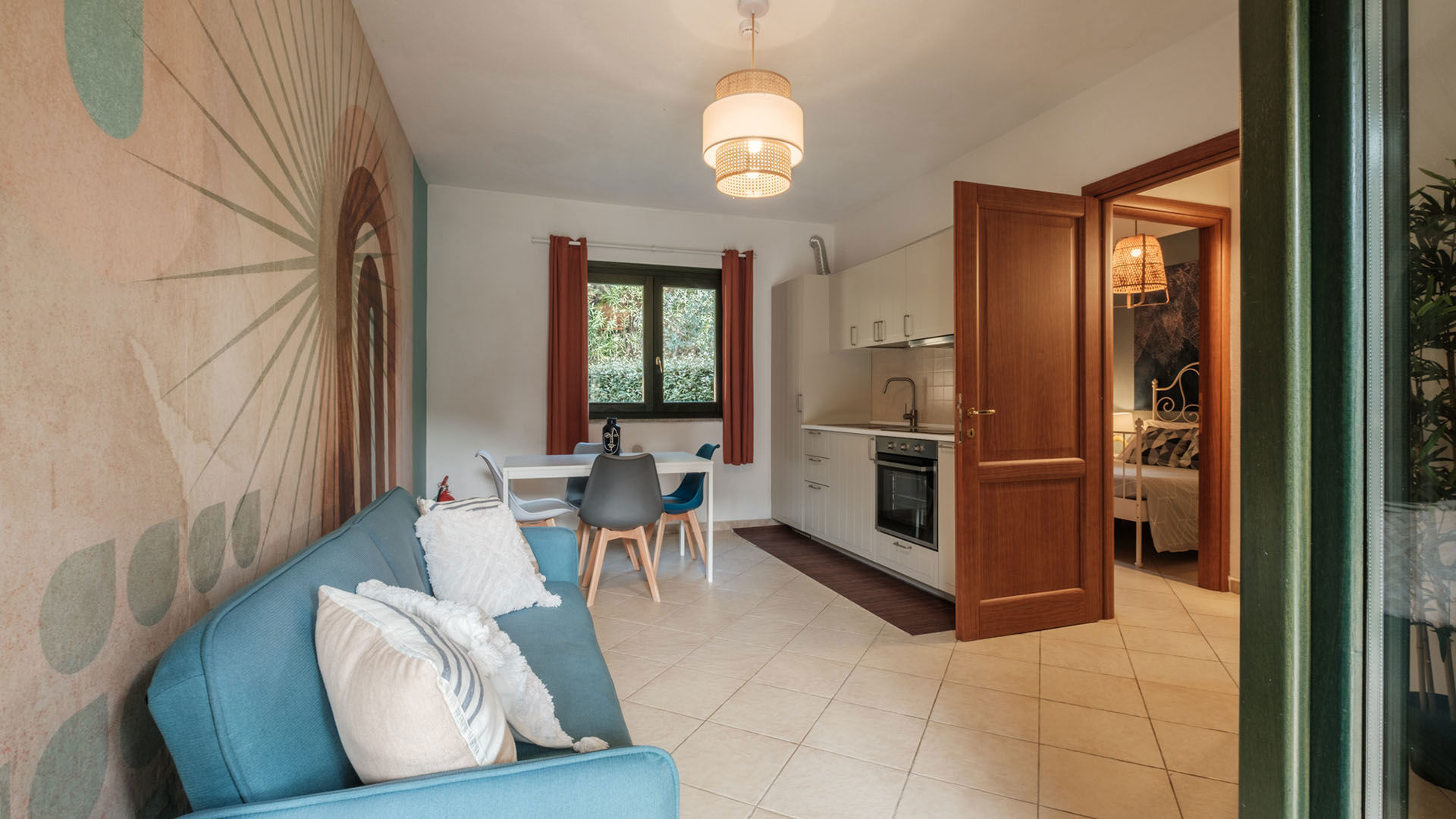 Bilocale al piano terra con giardino privato, ideale per chi ama vivere la vacanza anche all’aperto. Dispone di una camera matrimoniale, bagno e zona giorno con soggiorno e cucina in open space. Una soluzione rilassante e riservata, perfetta per coppie o piccole famiglie.