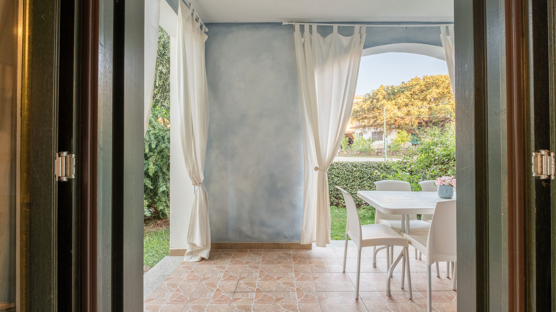 Bilocale al piano terra con piccolo giardino esterno ombreggiato, arredato in stile gallurese. Dispone di camera matrimoniale e bagno ed è pensato esclusivamente per due persone. Una soluzione intima e autentica, ideale per coppie in cerca di tranquillità e carattere locale.