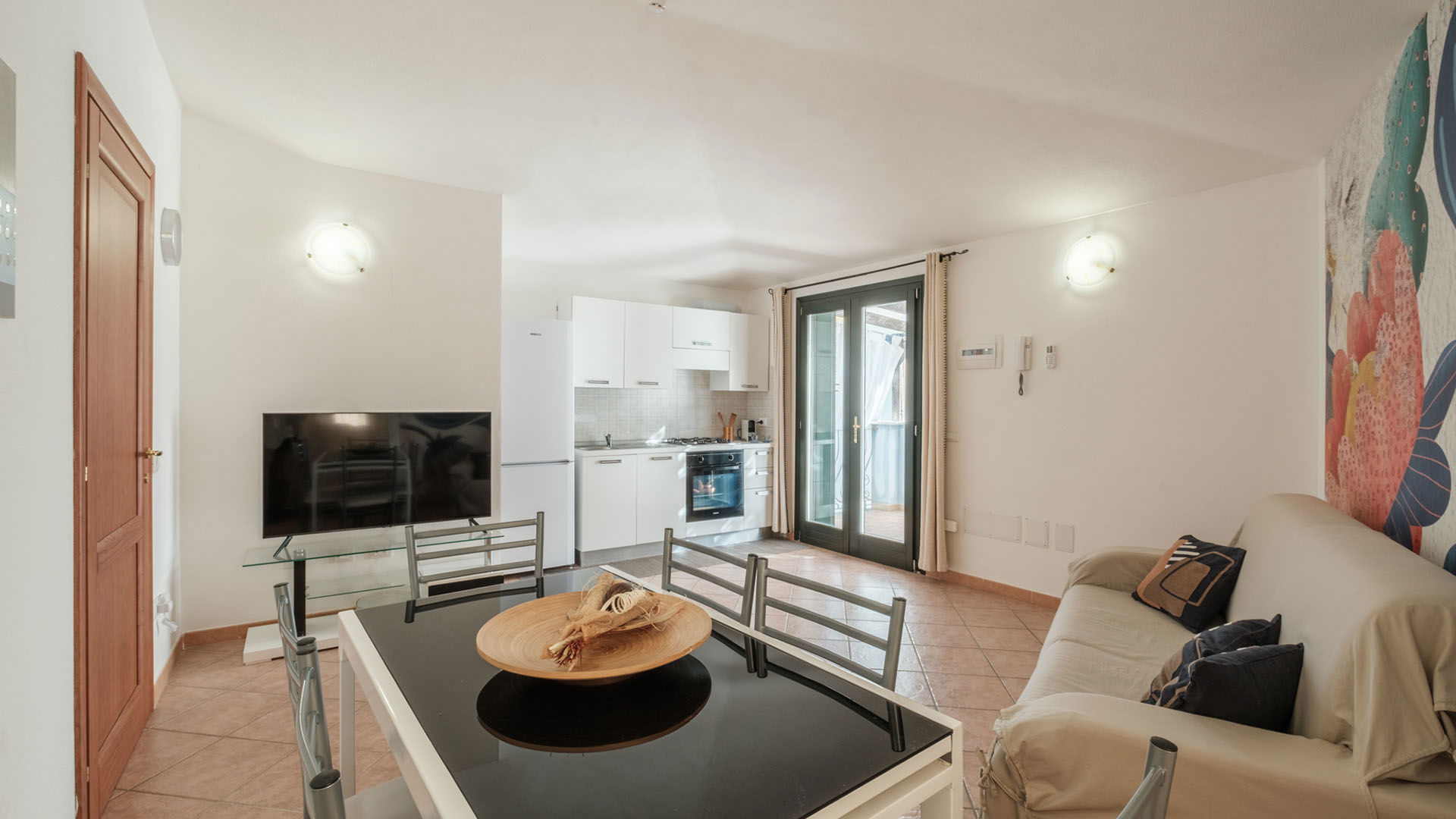 Bilocale al primo piano con terrazzino privato. Zona giorno con soggiorno, cucina e divano letto, oltre a camera matrimoniale e bagno. Una soluzione comoda e luminosa, adatta anche a ospiti aggiuntivi.